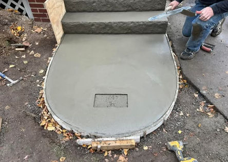 Poured and constructed a custom concrete walk way and steps with a high-end finish.